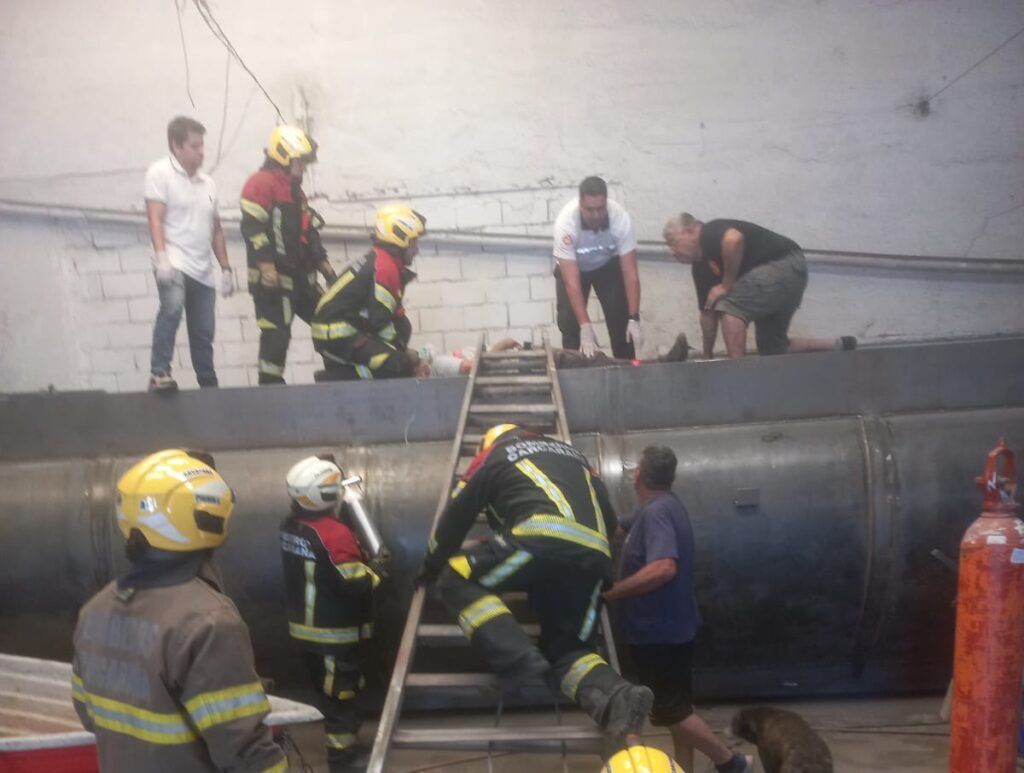 Bomberos Voluntarios de Carcarañá intervinieron este martes 6 de enero en un Código Rojo por el rescate de una persona desvanecida dentro de un tanque cisterna, en un taller de chapería y pintura ubicado en Güemes al 700.