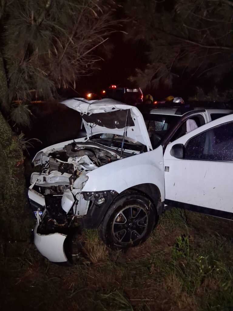 Según informaron, una Renault Duster que se desplazaba desde Rosario hacia Córdoba perdió el control por causas que se intentan establecer y terminó impactando contra las plantas ubicadas en el cantero central.