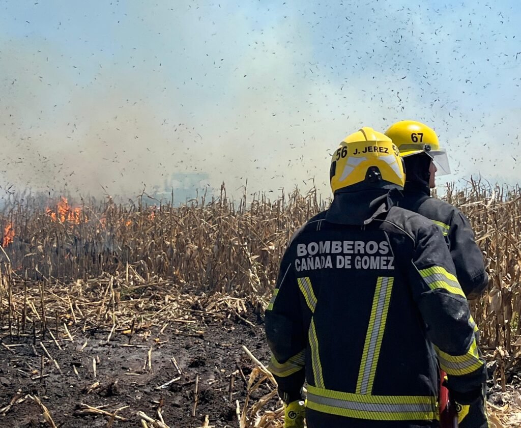 A las 13:00 horas, dotaciones de bomberos fueron convocadas por un incendio de campo ubicado a 14 kilómetros al sur de Cañada de Gómez.