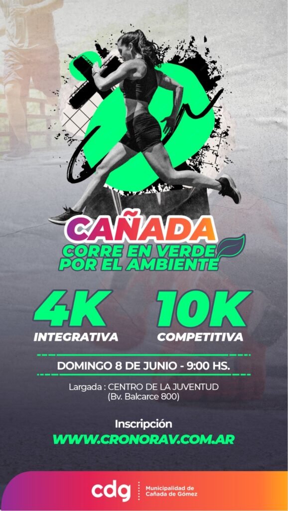 En el marco del día del ambiente, el municipio llevara a cabo su 2° edición de Cañada corre en verde por el ambiente, donde contará con dos instancias, 4 km integrativa y 10 km competitiva.