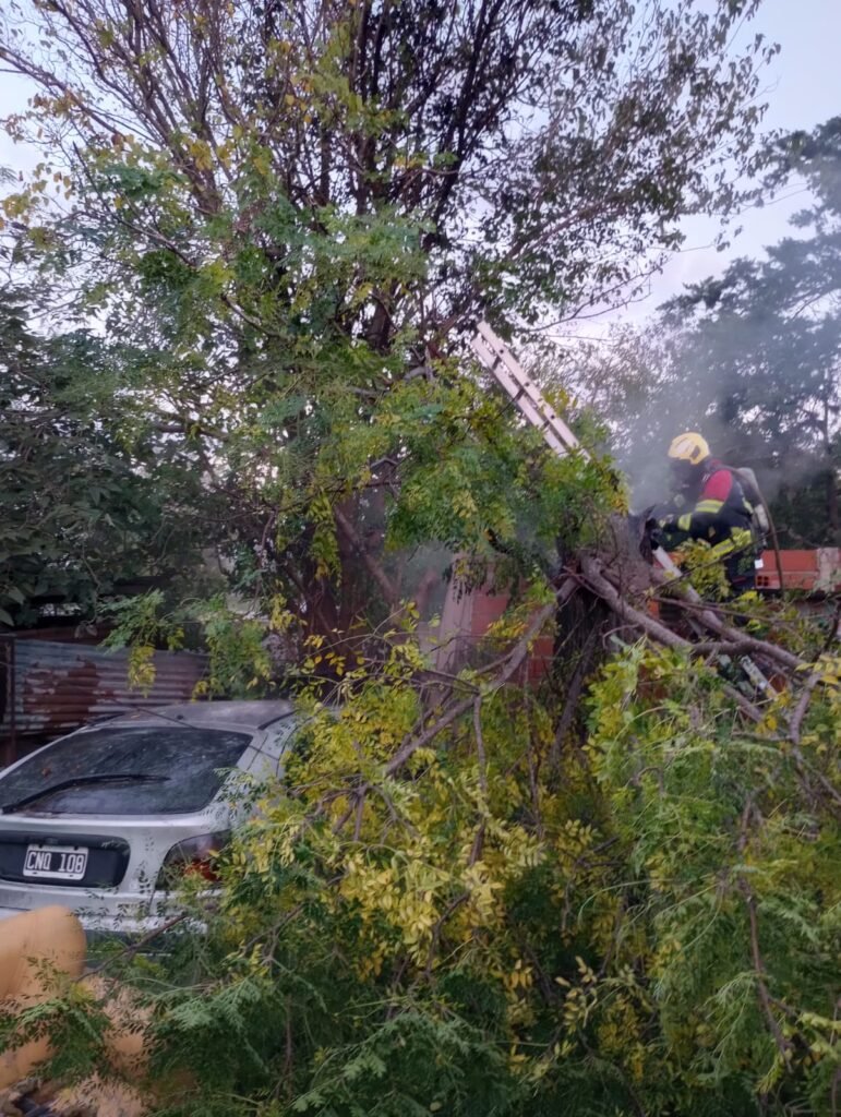 El hecho ocurrió en una vivienda de calle Brasil al 2500. Bomberos controlaron el incendio de un vehículo y de un árbol lindante.