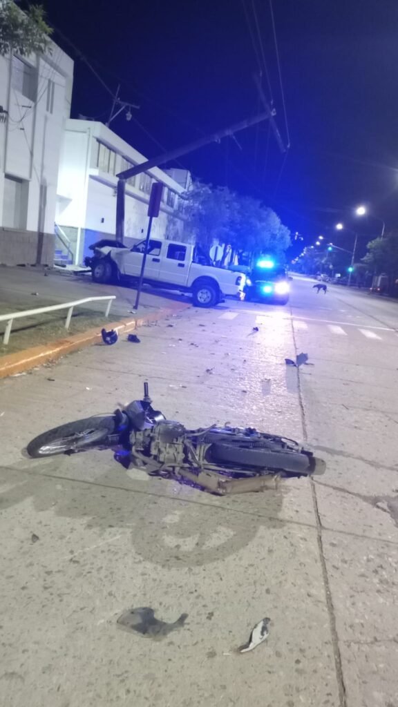 En la madrugada de este sábado, alrededor de las 4:15, los Bomberos Voluntarios de Carcarañá fueron convocados por un accidente vehicular en la esquina de avenida Sarmiento y Bomberos Voluntarios, donde colisionaron una camioneta Ford Ranger y una motocicleta de 110 cc.