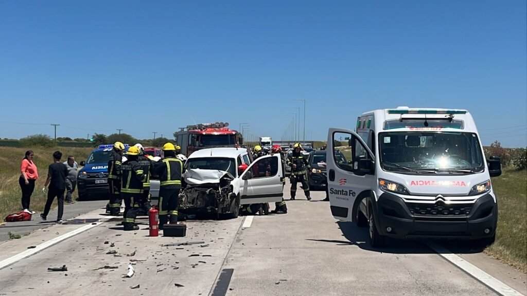Un camión y un utilitario colisionaron por alcance en el kilómetro 355 de la autopista, mano a Rosario. Dos personas fueron rescatadas por Bomberos y trasladadas al Hospital San José, mientras que el tránsito permaneció totalmente cortado.
