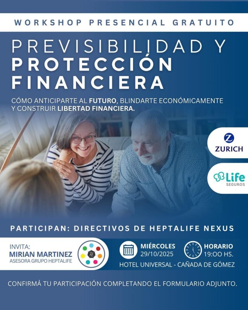 Este miércoles 29 a las 19 hs, se realizará en el Hotel Universal el primer workshop sobre planificación financiera y retiro, una propuesta abierta al público organizada por Heptalife Nexus, empresa dedicada a promover la educación y estabilidad económica a largo plazo.