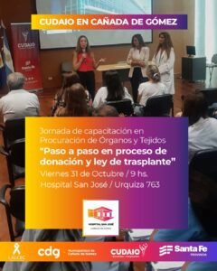 El CUDAIO (Centro Único de Donación, Ablación e Implante de Órganos y Tejidos) desarrollará este viernes 31 de octubre diversas actividades en Cañada de Gómez, con el objetivo de promover la donación y el trasplante de órganos, así como también brindar acompañamiento a pacientes y profesionales de la salud.
