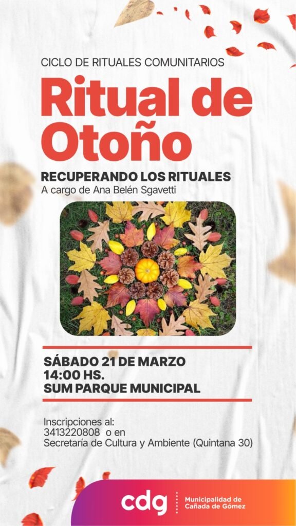 En el marco del espacio “Cultura en Voces”, se llevará adelante el “Ciclo de rituales comunitarios” con una propuesta dedicada al otoño. La actividad se realizará el sábado 21 a las 14 en el SUM del Parque Municipal.