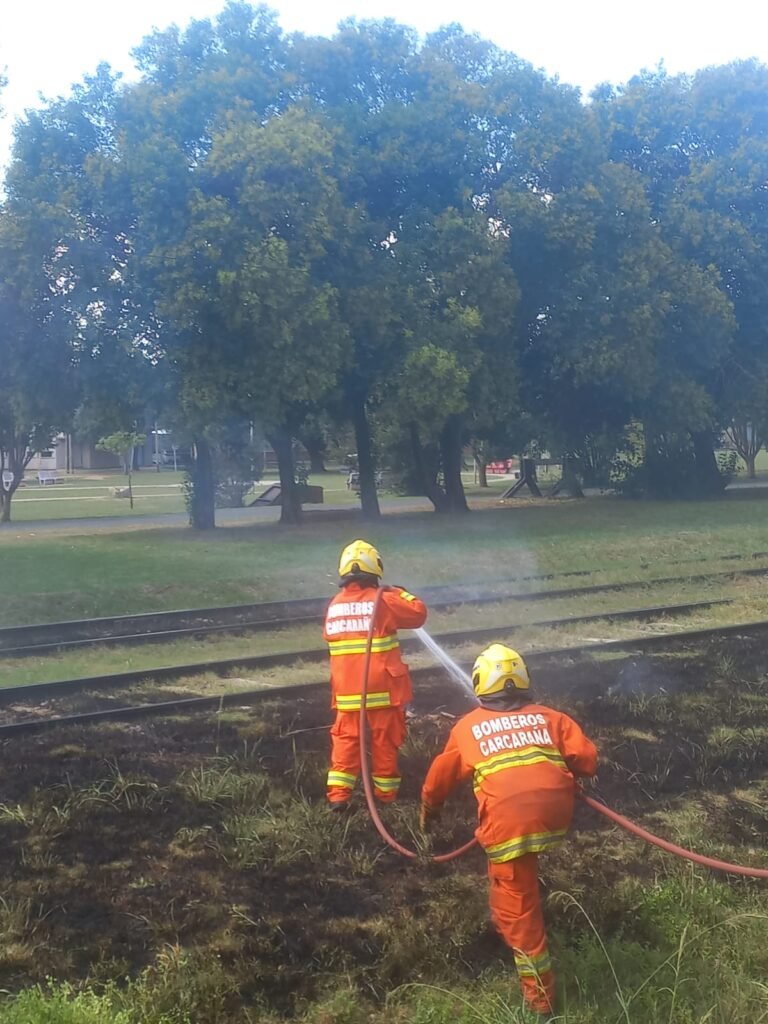 Este miércoles 11  a las 14:37hs, Bomberos Voluntarios de Carcarañá intervinieron en un incendio de pastizales en el sector de vías del tren, a la altura de calle 20 de Junio, hacia el oeste de la ciudad.