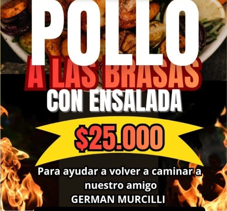 Un grupo de amigos se encuentran llevando adelante una pollada solidaria para ayudar a Germán Murcilli, quien sufrió la amputación de su pierna por debajo de la rodilla como consecuencia de una diabetes tipo 2 y actualmente se encuentra en proceso de rehabilitación utilizando muletas.