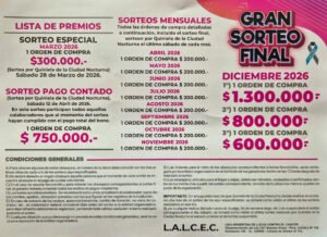 • Gran Sorteo Final: En diciembre de 2026 se pondrán en juego $2.700.000 (repartidos en tres premios de $1.300.000, $800.000 y $600.000).